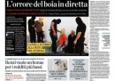 Le notizie di politica estera tengono banco sulle prime pagine, dalla situazione in Ucraina a quella in Siria. Il Messaggero, invece, apre con un retroscena politico riguardo le prossime attività di Silvio Berlusconi, che secondo il giornale, fondamentalmente, continuerà a sostenere il governo guidato da Matteo Renzi. I quotidiani sportivi confinano la seconda medaglia d'oro di Gregorio Paltrinieri agli Europei di nuoto in boxini laterali, mentre discutono estesamente del possibile sostituto di Mario Balotelli e del Trofeo Tim, un triangolare amichevole fra Juventus, Milan e Sassuolo che si giocherà stasera.